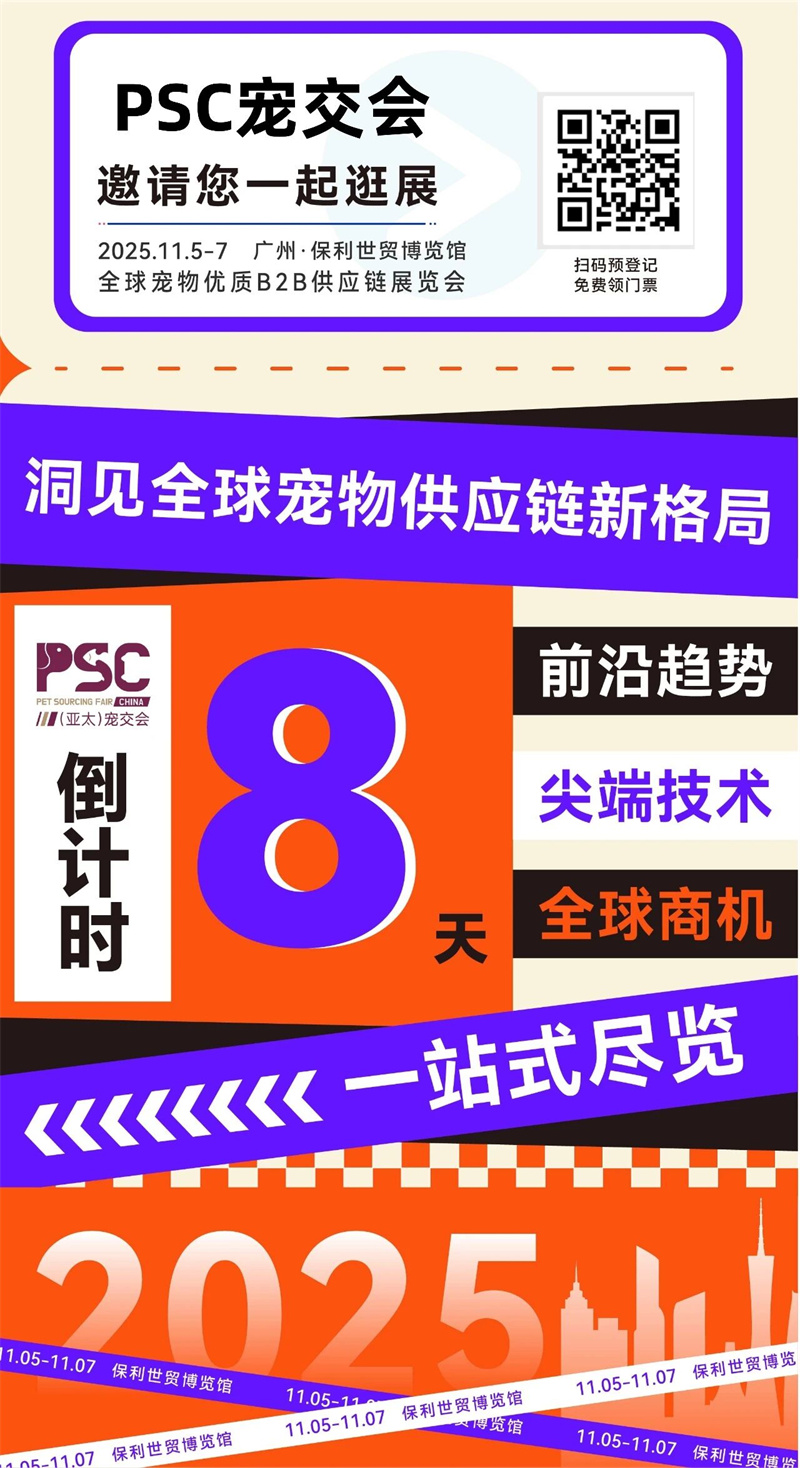 Tinggal 8 hari lagi hingga Pameran Hewan Peliharaan PSC ke-2, yang diadakan dari tanggal 5 hingga 7 November 2025 di Guangzhou Poly World Trade Center Expo!